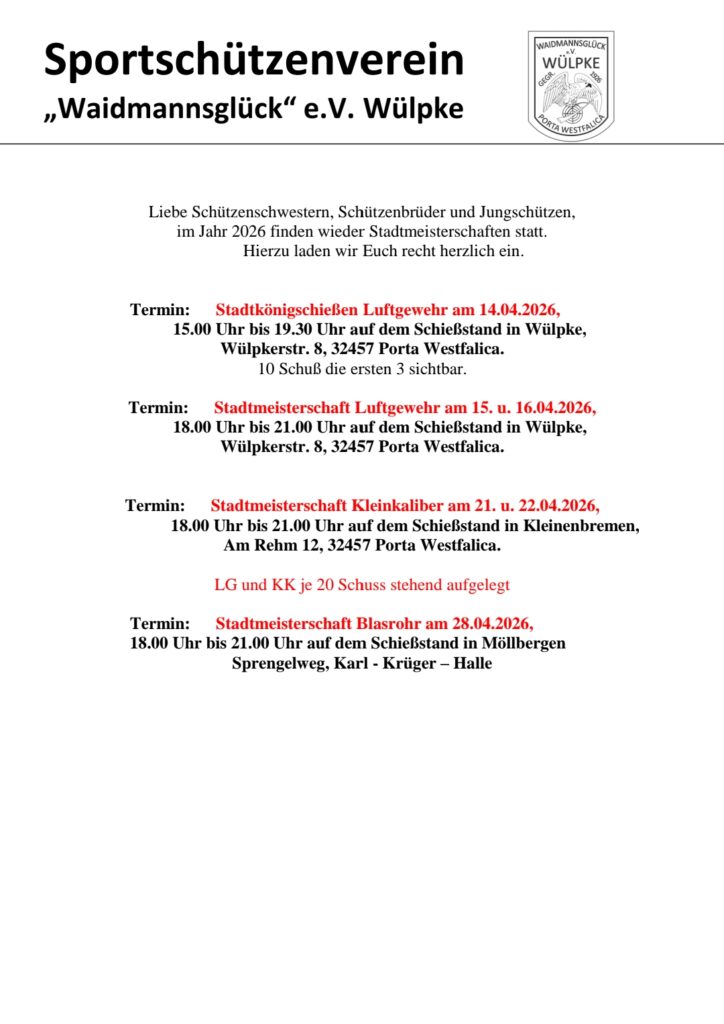 Einladung und Ausschreibung zur Stadtverbandsmeisterschaft